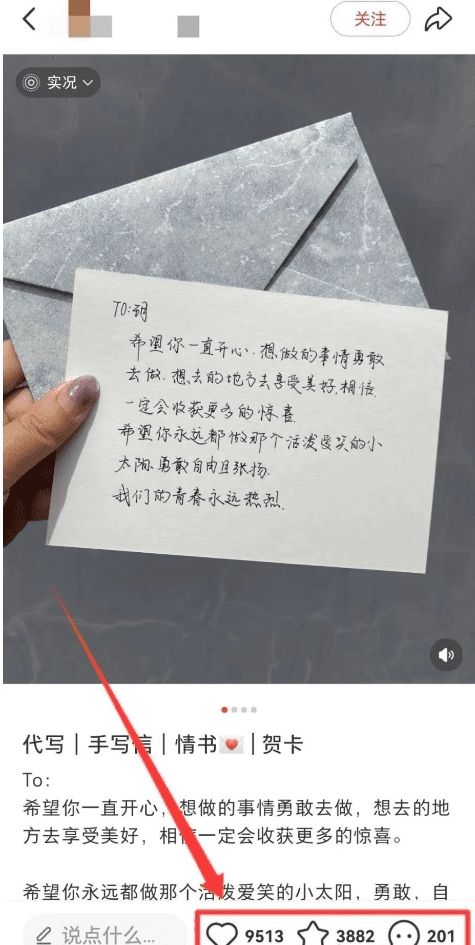说白了这个项目就是在小红书发布手写情书内容,然后帮助网友代写情书、道歉信、贺卡等方式进行变现。