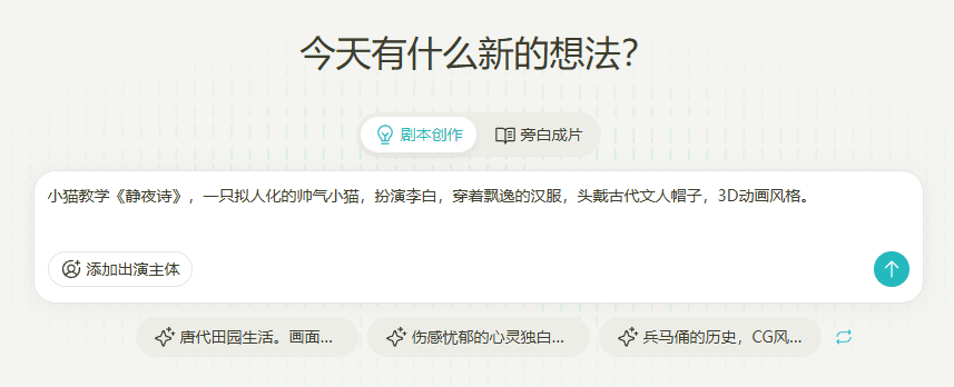 在提示词输入框里,点击输入提示词就可以开始短片制作了。